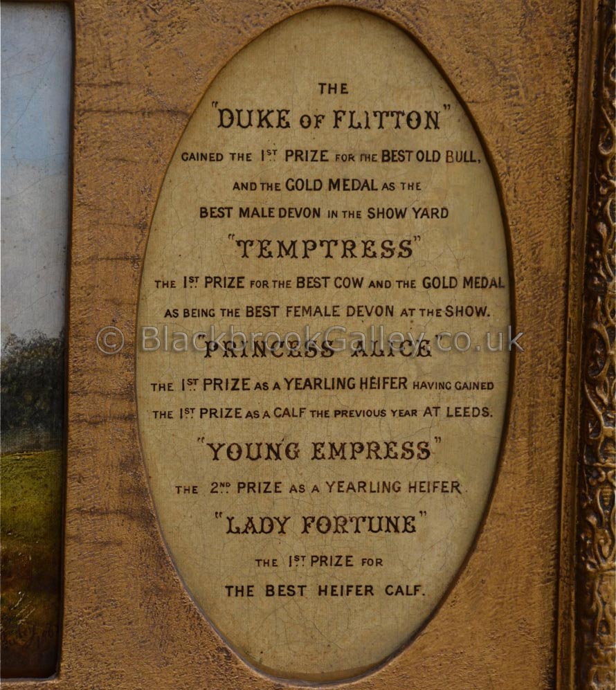 A truly unique, outstanding item of Devon Breed History. Oil on canvas in original frame. It is 5 separate portraits on one canvas. An amazing account of one man's achievement. Details are as per the inscription.Signed J. Pawley 1862, 30 x 35 inches.